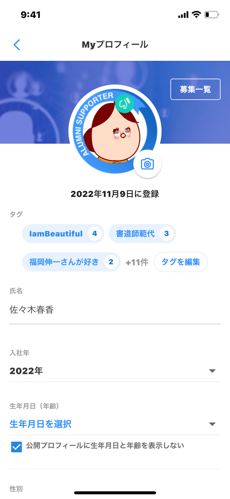 名簿からプロフィール確認